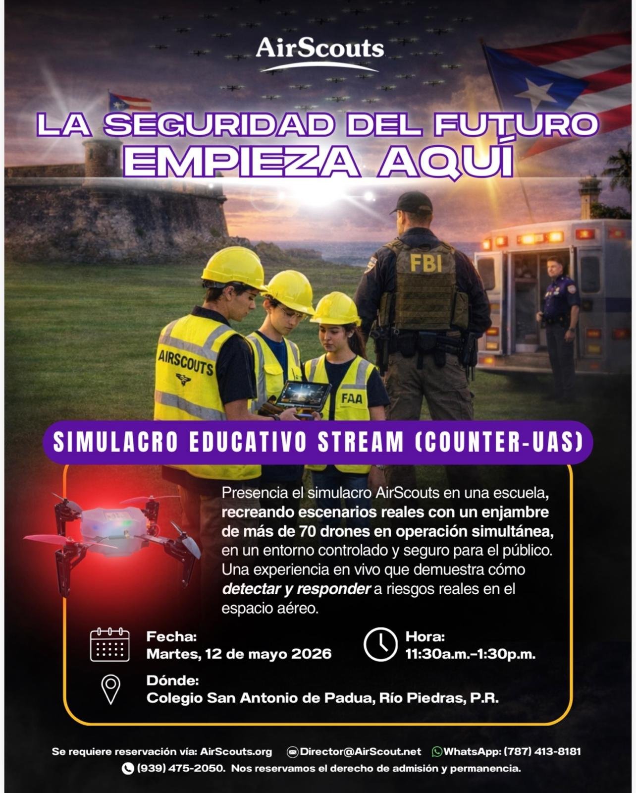 La iniciativa se alinea con el DHS/FEMA Counter-UAS Grant Program 2026-2027. AirScouts Foundation cuenta con el peritaje técnico en tecnologías emergentes C-UAS, posicionándose como socio estratégico para alcaldías y agencias. Municipios como San Juan califican directamente bajo los criterios del programa.